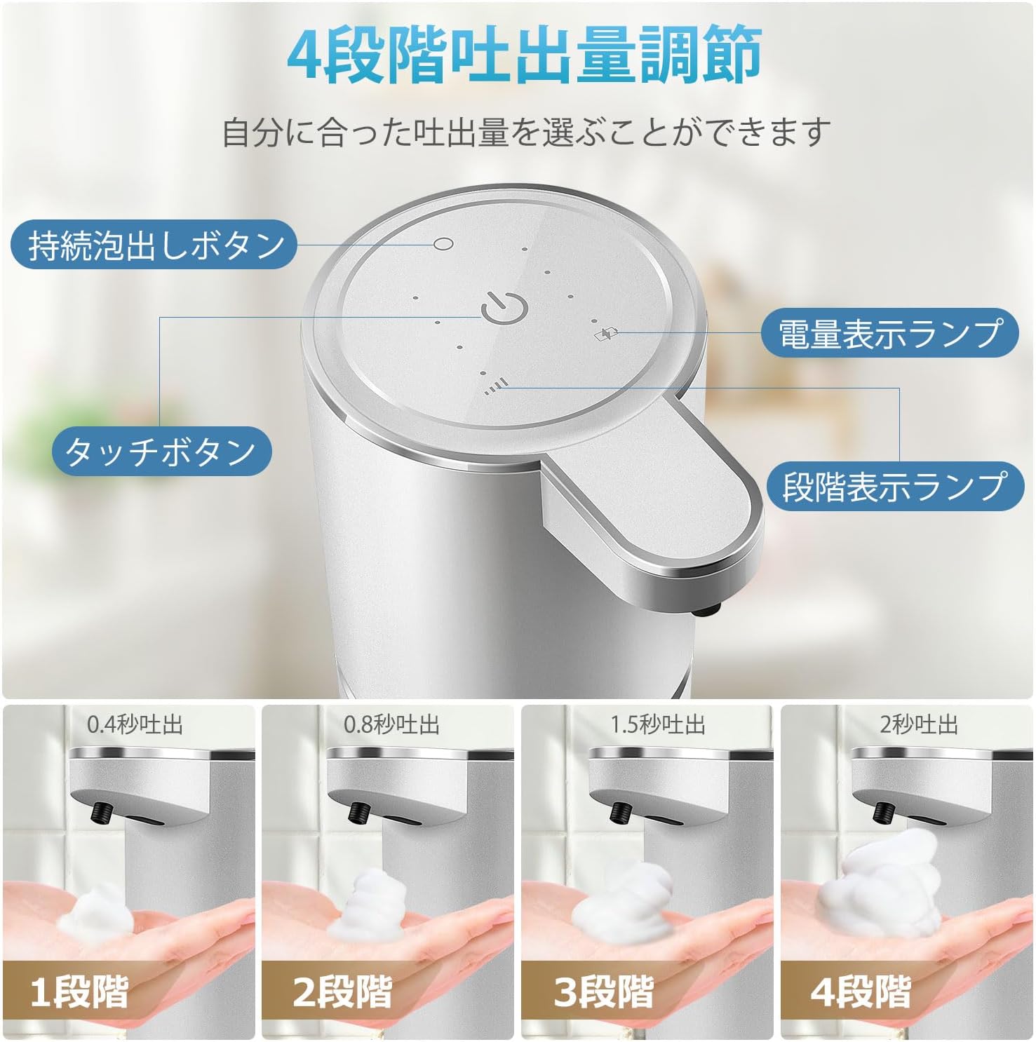 Automatic Foaming Soap Dispenser with 4 Adjustable Control Rechargeable Hands Free Auto Soap Dispenser for Kitchen, Bathroom, Hotel, Restaurant,Touchless 380ml