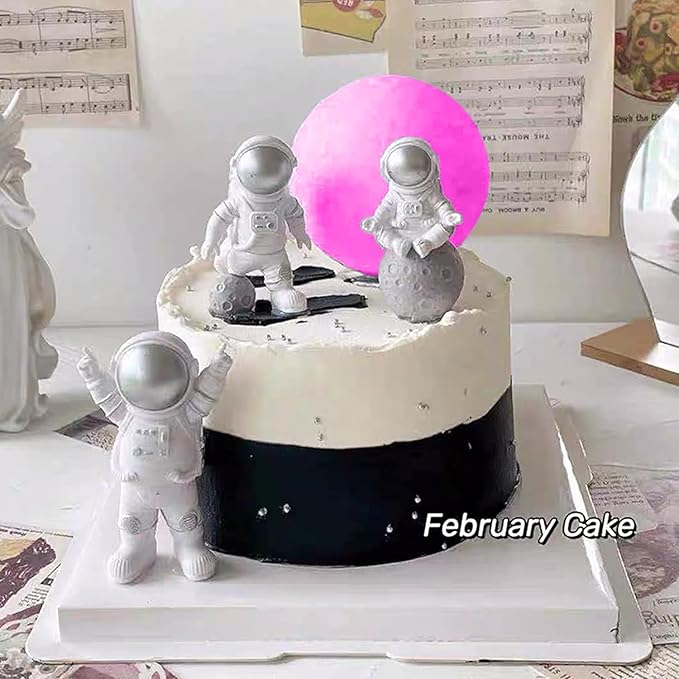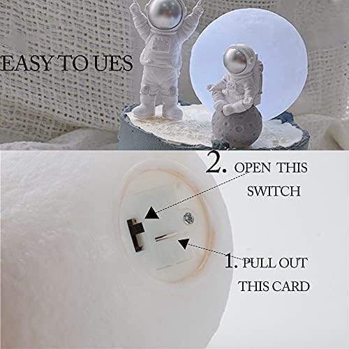Cake Topper for Kids Astronaut Space Birthday Cake Decoration, 3D Soft Light Moon Outer Space Cake Topper for Party Supply, LED Moon Planet Birthday Cake Decoration (Pink)