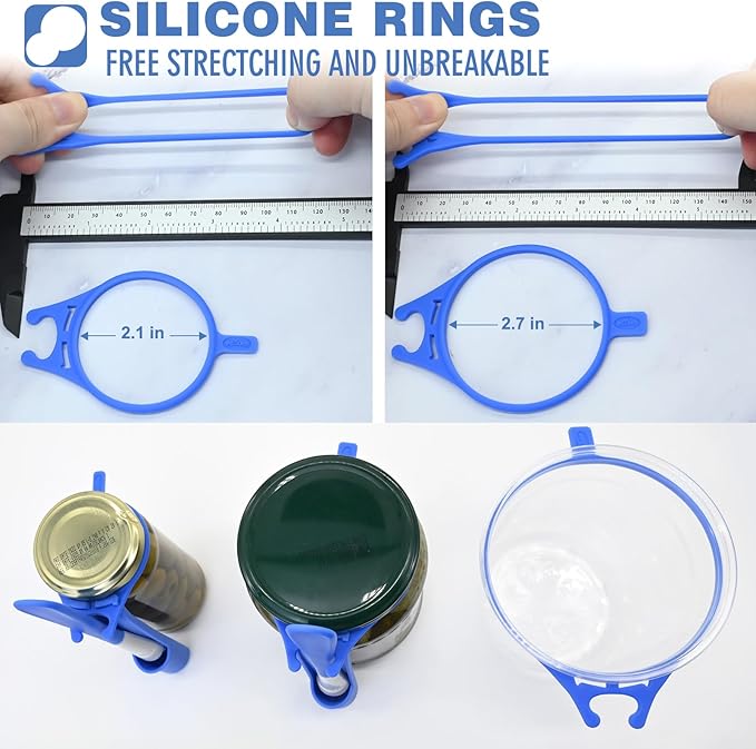 - [FREE STRECTCHING] The matching ring is made of silicone material, which is very elastic and will not break during use. Two different sizes to accommodate different sized jars in the kitchen.
