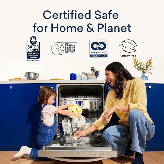 - CLEAN INGREDIENTS. Microplastic-free, septic-safe formula made with plant and mineral-based cleaning power so it’s powerful enough to combat spotting and filming even in hard water, but safe for use around everyone in the family. Formulated clean without potentially gut-harming ingredients. EPA Safer Choice, Leaping Bunny Cruelty-Free, Vegan, B Corp Certified, Climate Neutral, USDA Bio-Preferred.