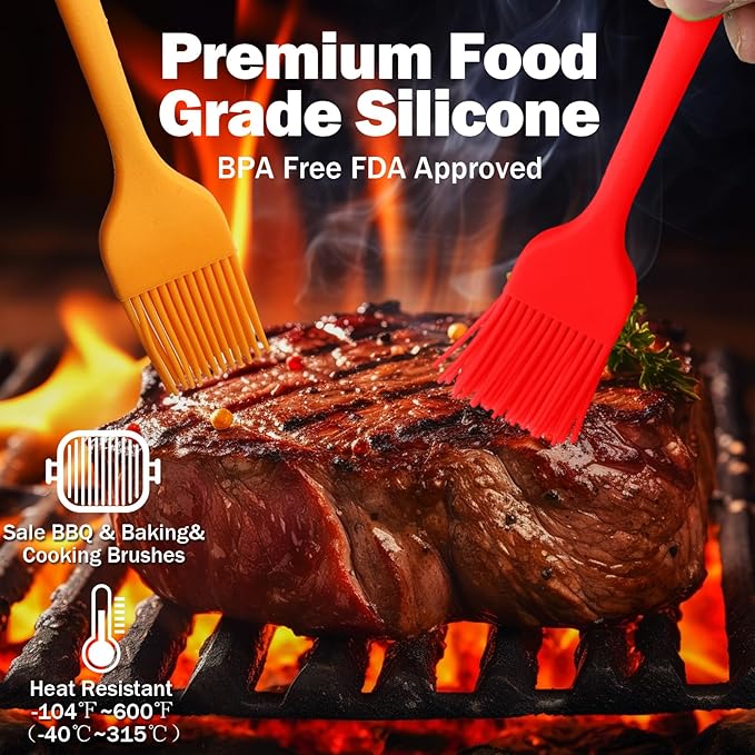 - 【Premium Quality】The basting brush is made of top food grade compliant silicone. The cooking brush resists temperatures up to 446℉/230℃. It will not melt, warp, discolor, or shrink, BPA free. They are essential camping, picnic and kitchen accessories.