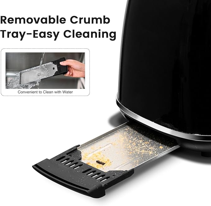 2 Slice Toaster Retro Stainless Steel with Bagel, Cancel, and Defrost Functions, 6 Bread Shade Settings, Extra Wide Slots and Removable Crumb Tray, Black