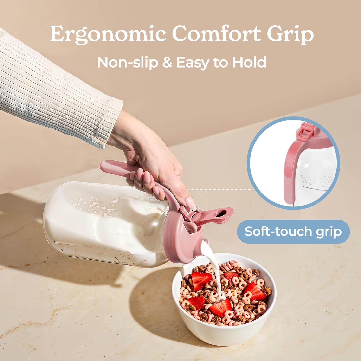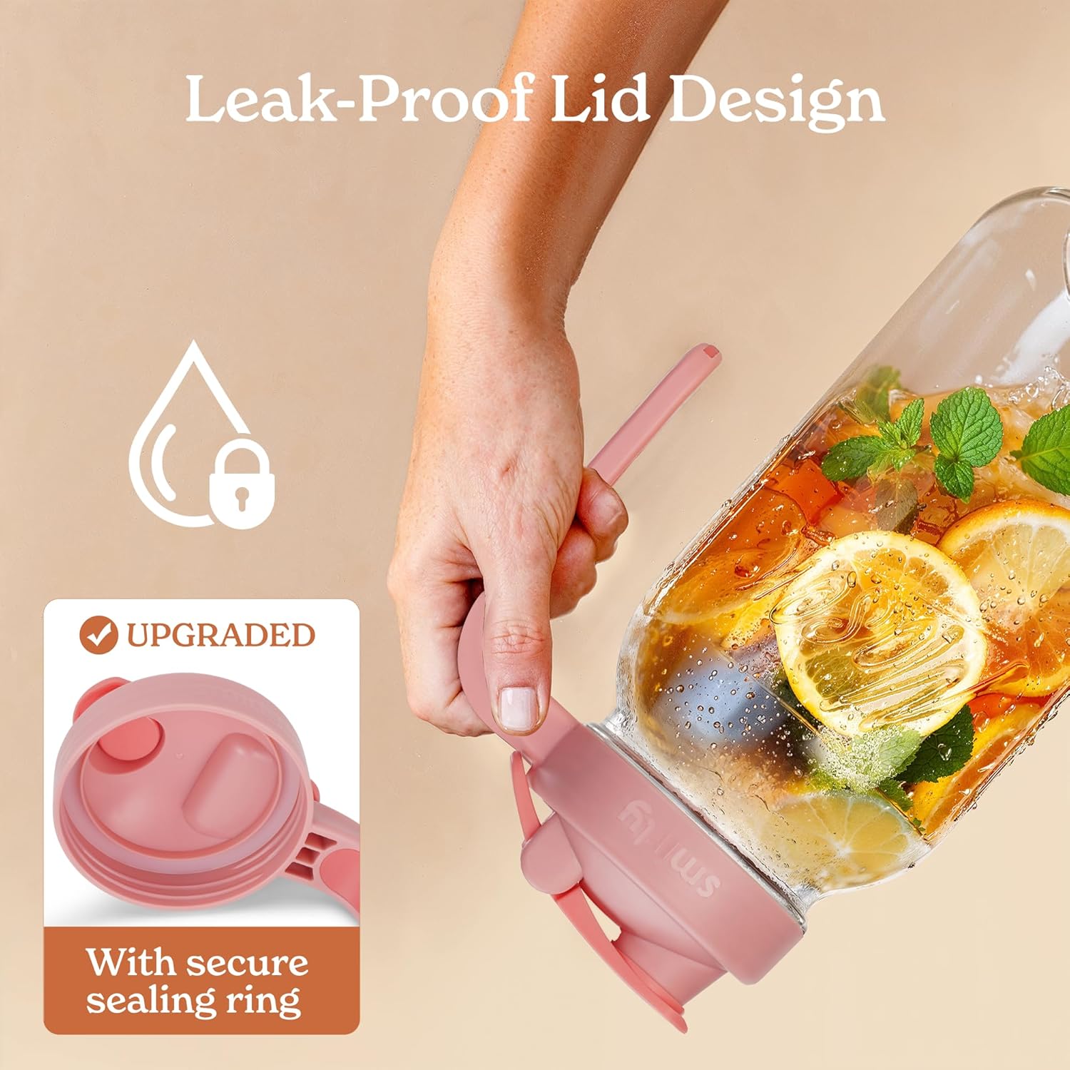 - Functional design: The non-slip handle on this 2 quart pitcher with lid ensures steady pouring.Hanging ring on this large mason jars adds convenience for easy carrying and storage
