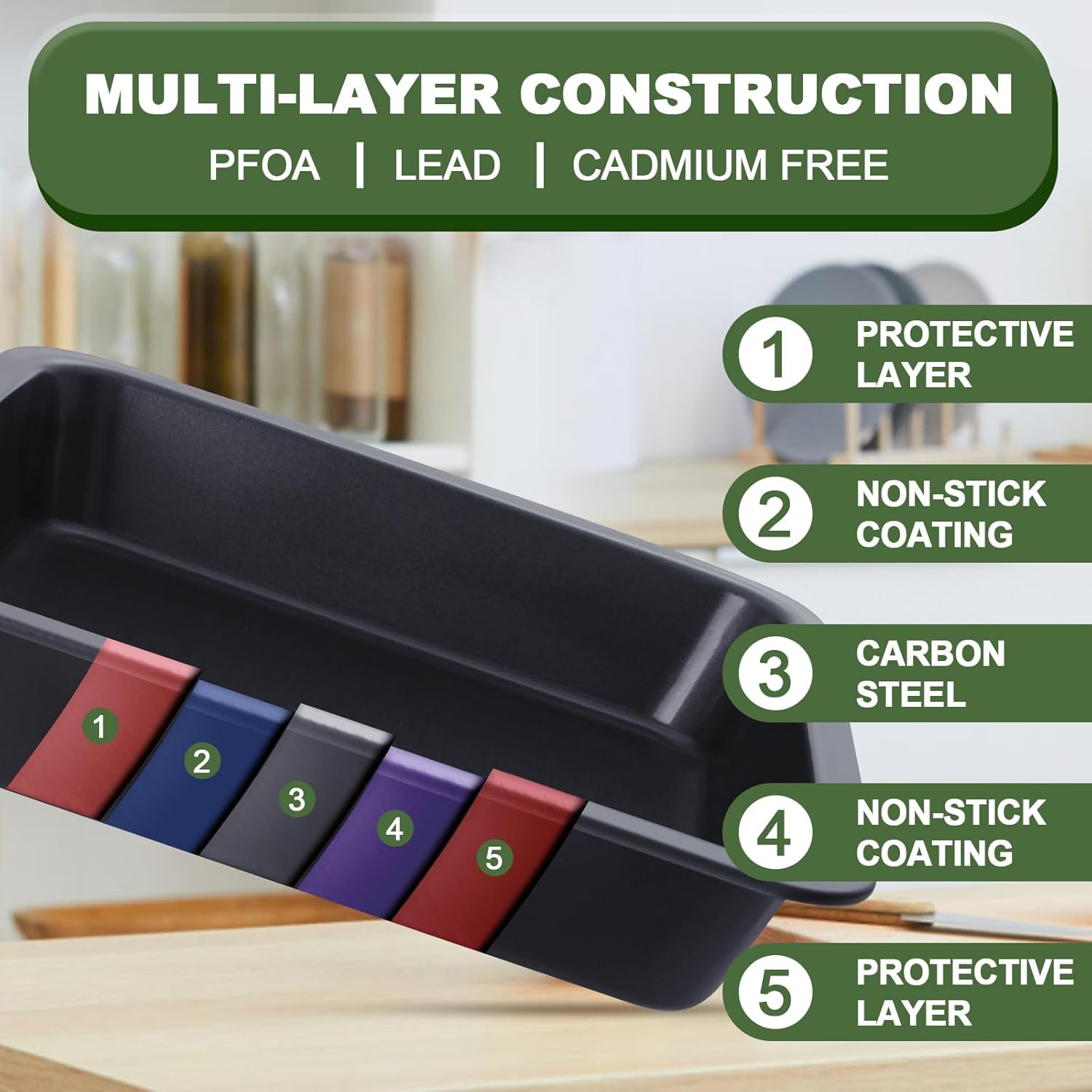 - ăSUPERIOR NONSTICK TECHNOLOGYă- Our non-stick oven baking set is shielded with a superior nonstick coating that emits no weird odors or smells, and is also scratch-resistant ensures that the food will easily be released when cooked without sticking, cleanup is a breeze.