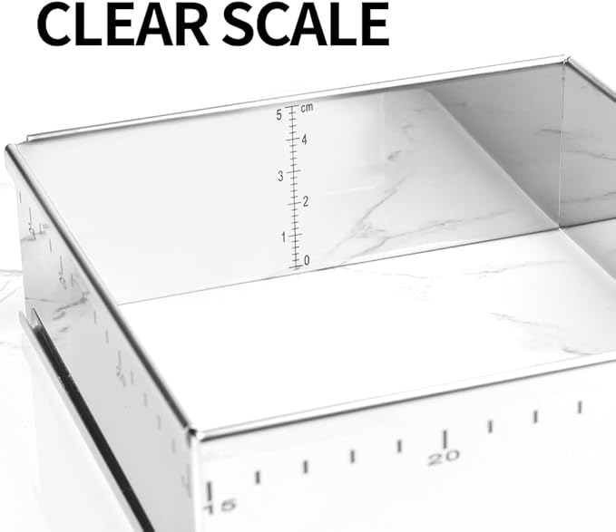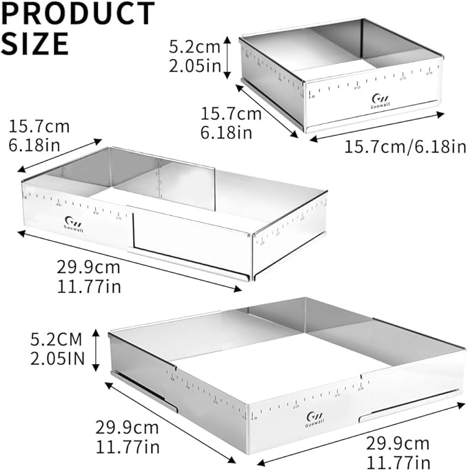 Guowall Stainless Steel Extensible Cake Ring Mold Adjustable Square Shaped Mousse Ring Detachable Nonstick Cake Cutter for DIY Baking - 6in