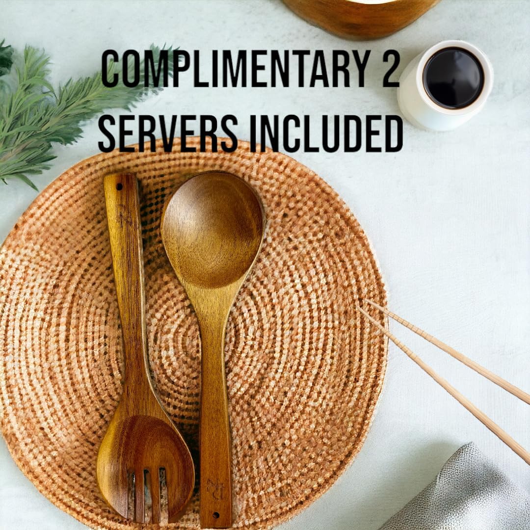 - COMPLIMENTARY SERVERS: Includes a set of two complementary serving utensils (wooden fork and spoon) to enhance your serving experience. The cohesive design ensures a stylish presentation while making serving efficient and enjoyable.