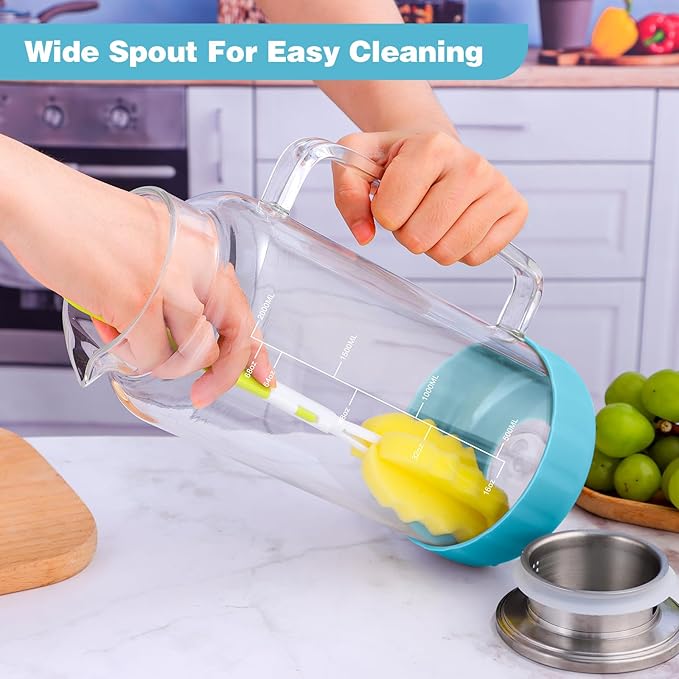 - COMFORT-FIRST DESIGN: With your comfort in mind, the jug boasts a thick ergonomic handle for a secure grip, making pouring effortless without straining your wrist. The wide-mouthed spout is easy to clean, and we also provide a long-handled brush for your convenience.