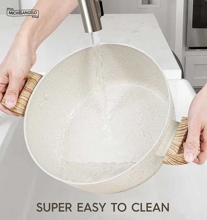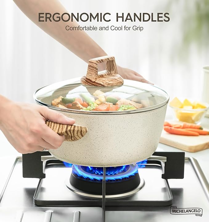 MICHELANGELO 4.3 Quart Nonstick Soup Pot with Lid, Non-Toxic Granite Coating, Induction Compatible, Non Stick Pot for Cooking with Stay-cool Handles, White