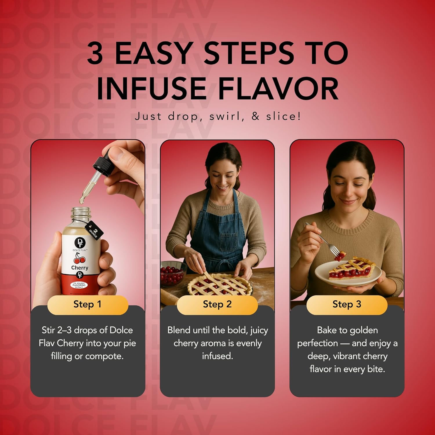 - Revolutionize Cooking with Cherry: Transform your recipes with our cherry flavoring extract. Ideal for rich marinades, vibrant dressings, and decadent cherry cheesecakes, its versatility adds a luxurious cherry note to both savory and sweet dishes.
