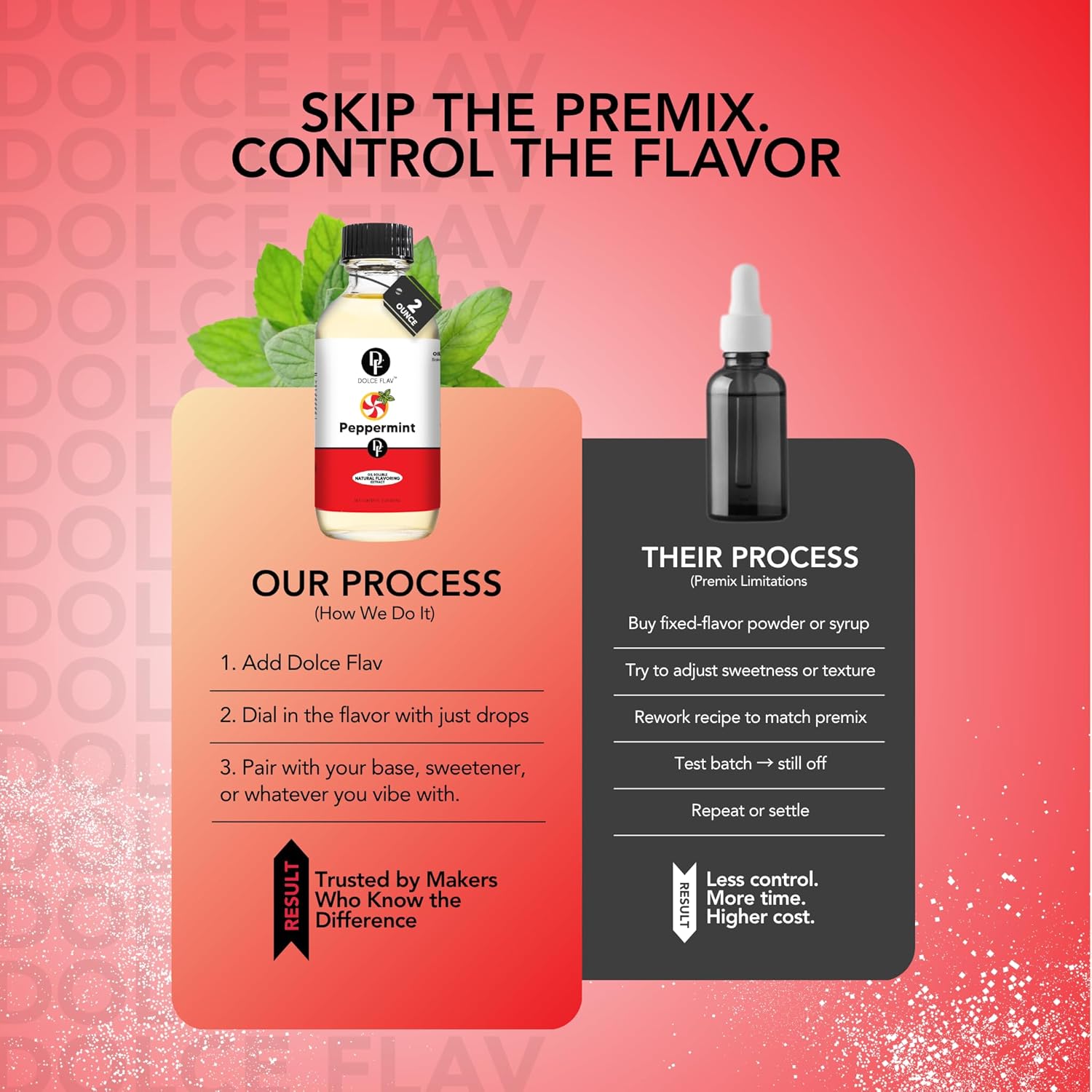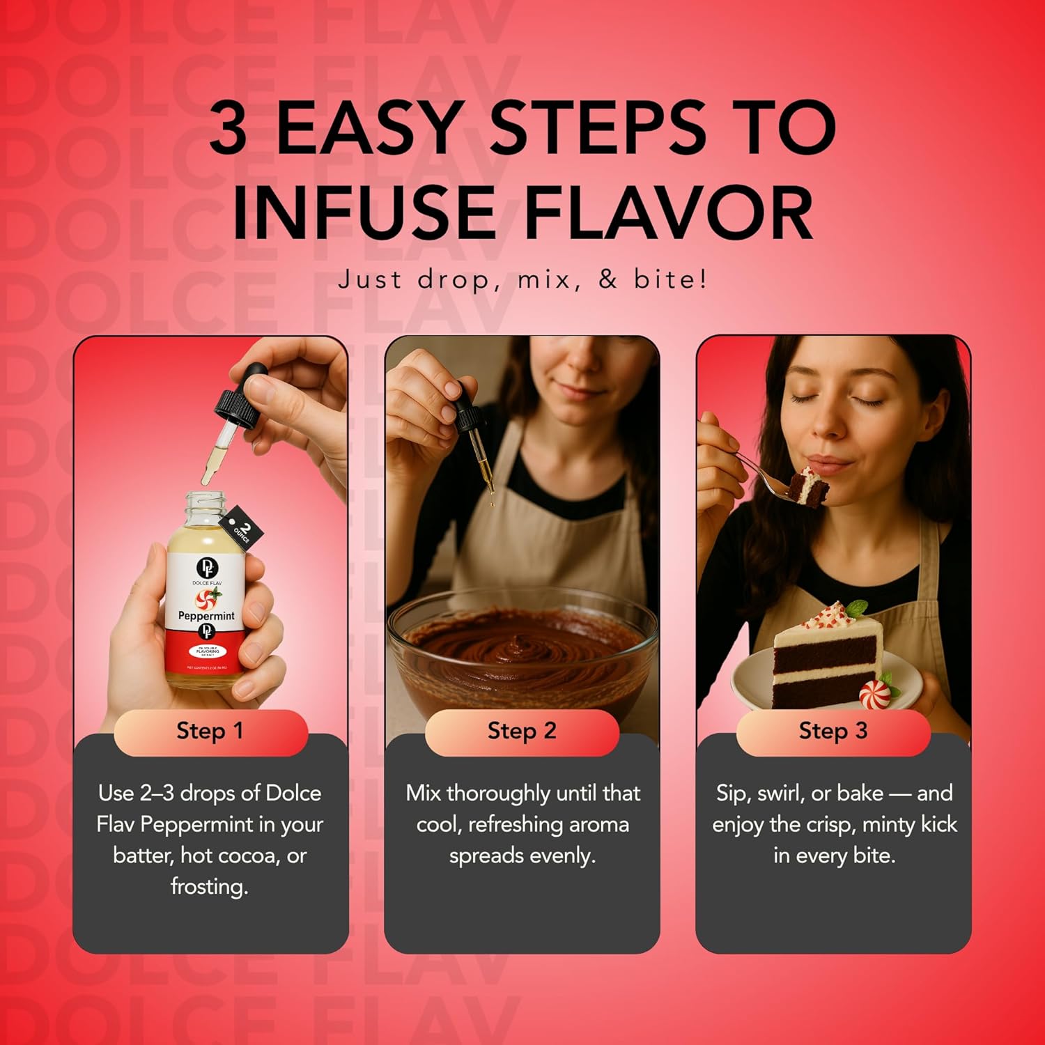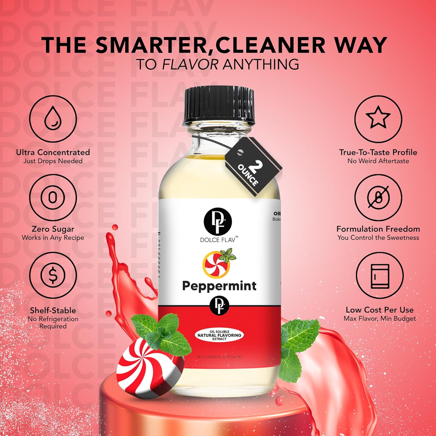Dolce Flav Natural Peppermint Extract – 2 Ounce Oil-Soluble Kosher, Sugar-Free, Concentrated Pure Mint Flavor for Hard Candy, Chocolates & Baking, Includes Measured Dropper