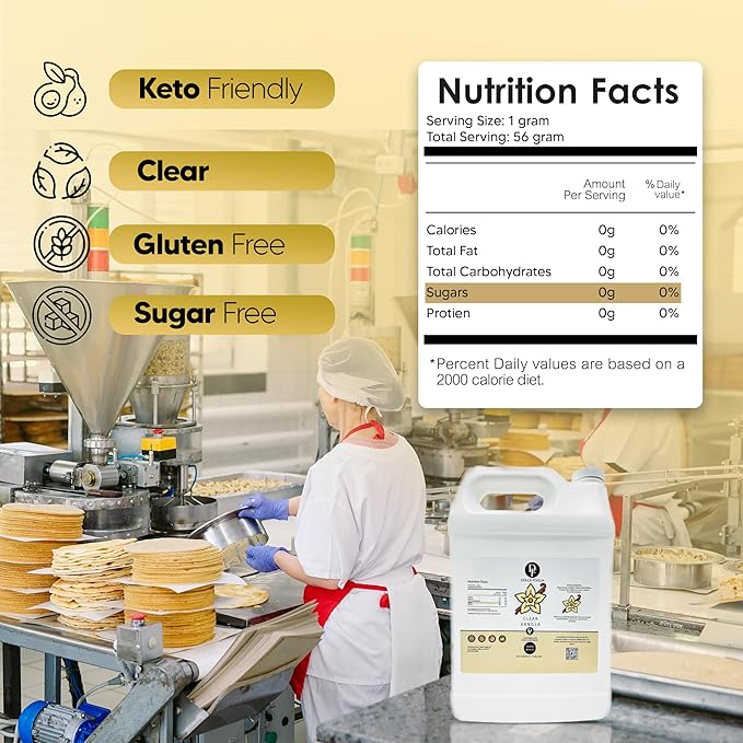 - Clear Imitation Vanillla Extract - A premium baking essential, crafted for bakeries and restaurants, ensuring a pristine white finish for gourmet dishes.