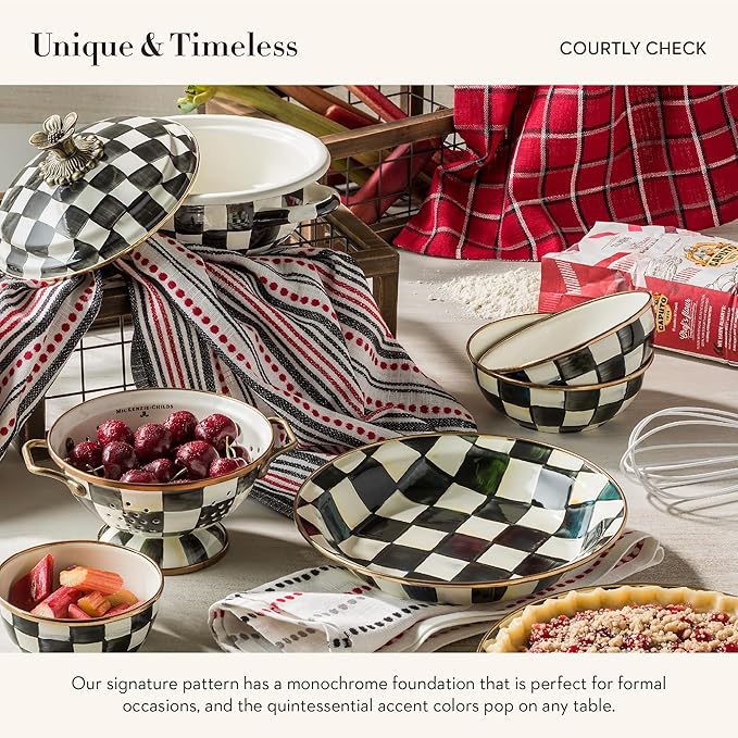 MACKENZIE-CHILDS Enamel Everyday Bowl, Serving Bowl for Entertaining, Extra-Small, Black-and-White Courtly Check, Set of 4