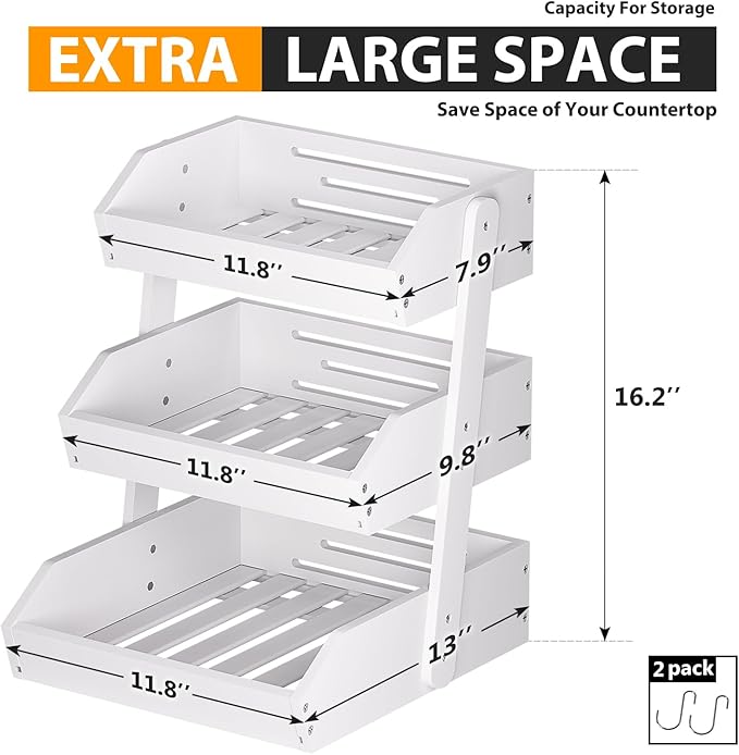 - LARGE CAPACITY: Gmtsl fruit basket for kitchen counter used as large wooden fruit bowl with 2 banana hooks, you can put fresh fruit,Bread,Snack in each tier. Different sizes(2 or 3 tiers) meets different vegetable storage needs (each basket can be used separately)