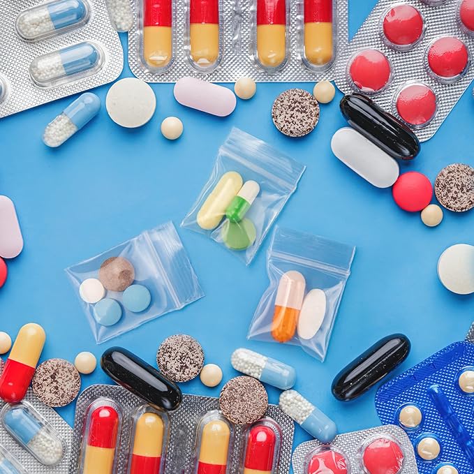 300pcs 1" x 1" Plastic Zip Bags, 2 mil Thick, Clear Small Pill Bag, Mini Zip Baggies, Reclosable Zipper Poly Bag for Travel, Storage, Packaging