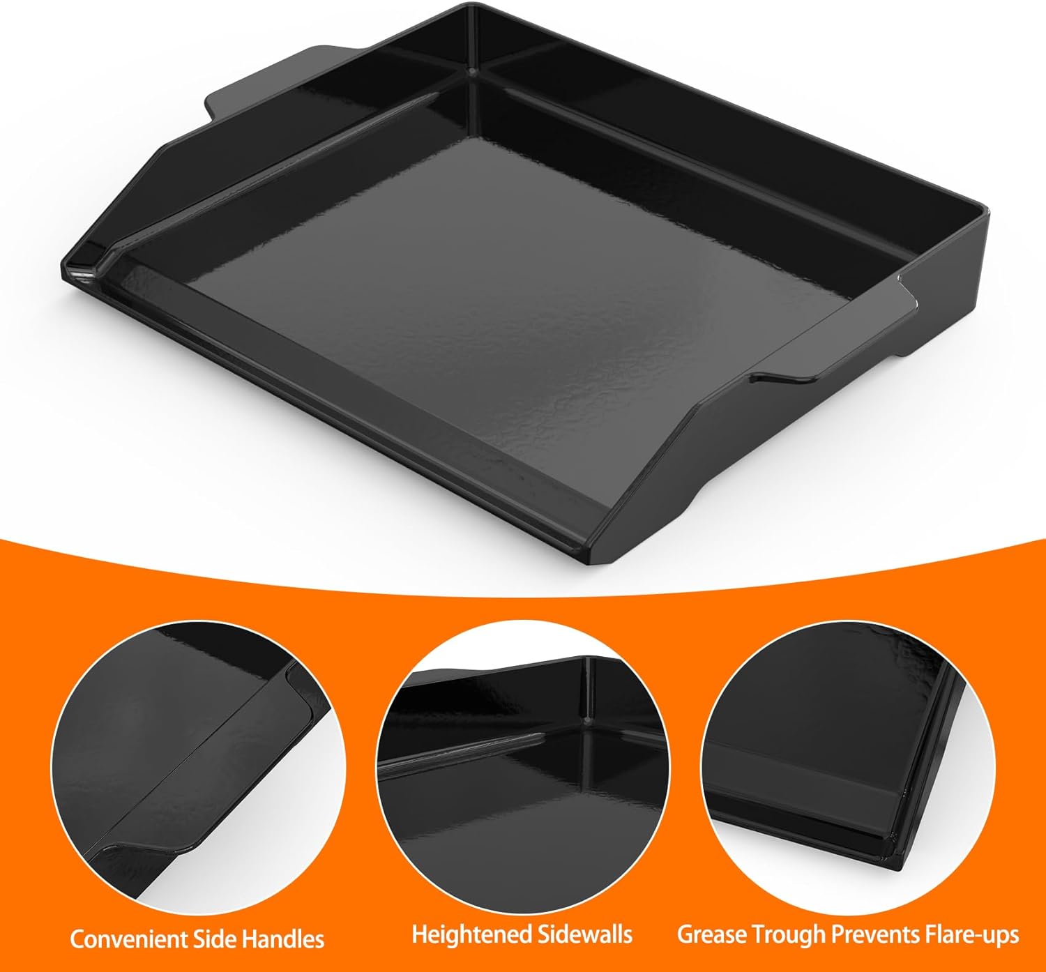 Onlyfire Universal Enamelled Cast Iron Griddle, BBQ Flat Top Griddle for Any Grills and Gas Hob, 18.6" x 14"