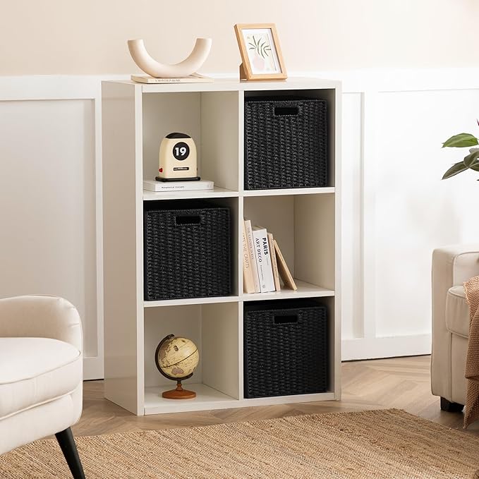 UBBCARE 6 Pack Wicker Basket, 11L×11H×10.5W inch Woven Paper Rope Storage Baskets for shelves, Foldable Cube Storage bin with Handle, Storage Basket for Organizing & Decor, Black