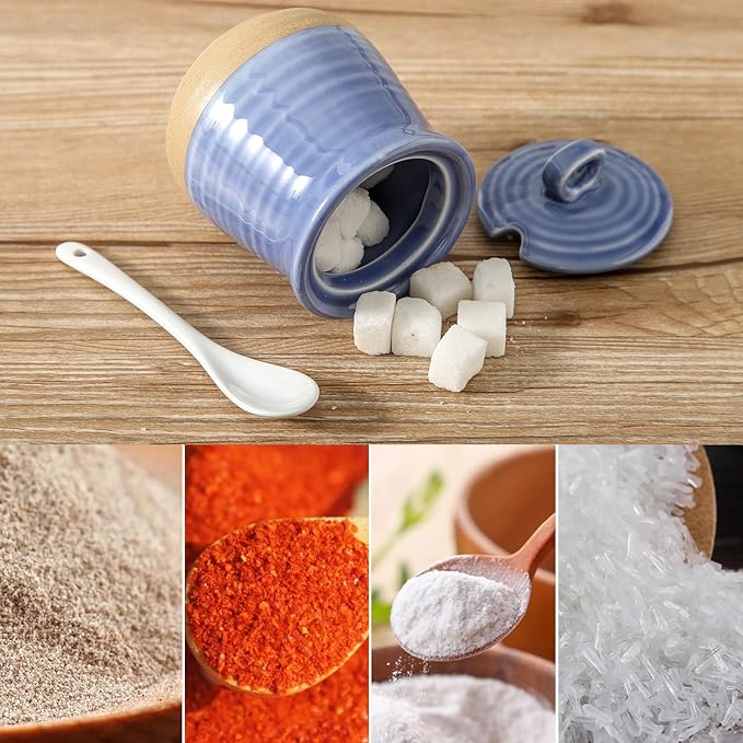 - Versatile in Use: This set includes a lidded sugar bowl that serves a multitude of functions. Beyond sugar, it's an ideal container for salt, monosodium glutamate, pepper, and an array of seasonings. The included spoon enhances its practicality for daily use.