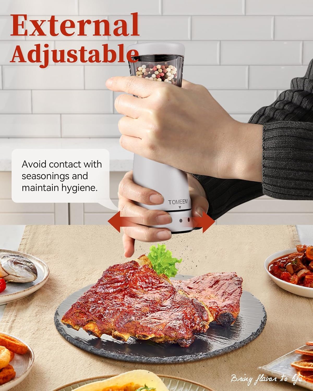 - Extra large 4.5 oz capacity: Say goodbye to constant refills! Our electric pepper grinder has a generous 4.5 oz capacity and a wide 1.8" opening, making spice refills effortless and less messy