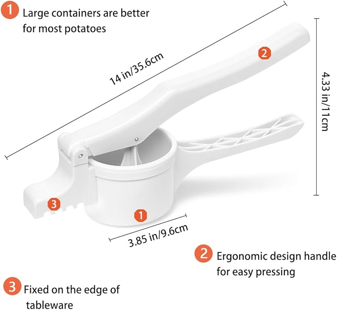 - Easy to Clean: Potato Press can be easily disassembled and any food residue can be washed off with warm water. The blades can be placed in the top rack of the dishwasher for easy maintenance.