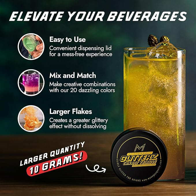 - VERSATILE, EASY, & MESS-FREE – Effortlessly enhance any dish or drink. Simply sprinkle MONÉGASQUE Glitterz onto halloween cocktails or desserts for a dazzling effect. With 20 vibrant colors, it's perfect for any event, keeping your creations stunningly fresh.