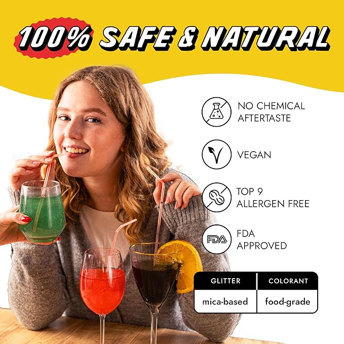 - DESIGNED FOR MAXIMUM IMPACT – Our glitter features large flakes that create a striking visual effect without dissolving, ideal for halloween cocktail mix and drinks. Each jar contains 10 grams, giving you more glitter for your creative endeavors.