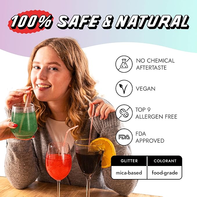 - ✅ SAFE, VEGAN & CERTIFIED FOR ALL – Enjoy peace of mind. Our halloween glitter is made from food-grade mica and colorants, and is fully vegan, gluten-free, nut-free, Halal, and Kosher certified. Designed to be beautiful and inclusive—perfect for events where dietary needs matter.