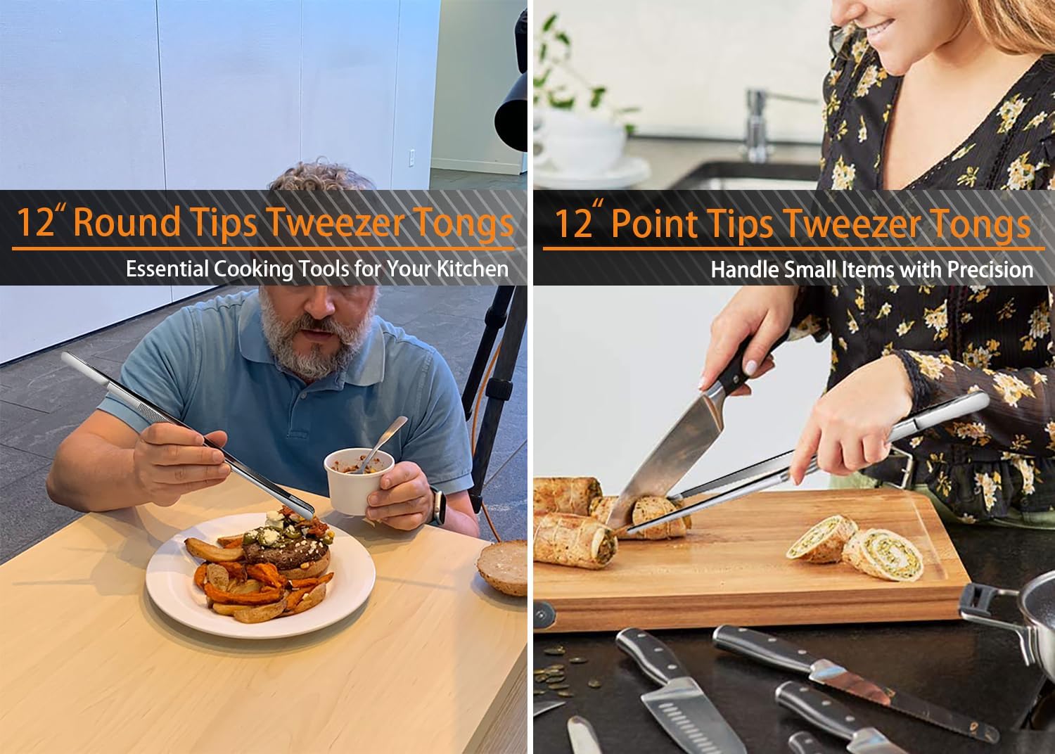 - PREMIUM STAINLESS STEEL - Tweezer tongs for cooking are made of high quality food grade stainless steel, rust -proof, anti-corrosive, sturdy and durability. Use the 12" long precision tweezers in the kitchen to extend your reach for cooking, roasting and plating. When exposed to heat, liquids, and awe inspiring environments, it will withstand the test of time.