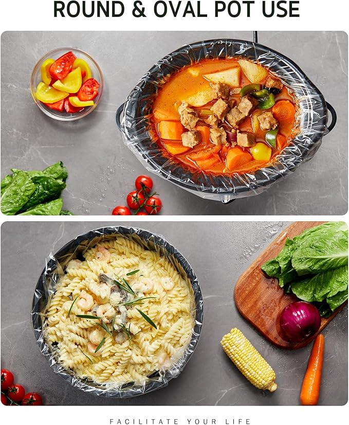 - Heavy Duty Material: 60 Count 10.5" x 17.5" size slow cooker liners, made of high tenacity nylon blend material to prevent bone punctures and leaks, will not affect the taste of food, making it easy and safe to cook food.