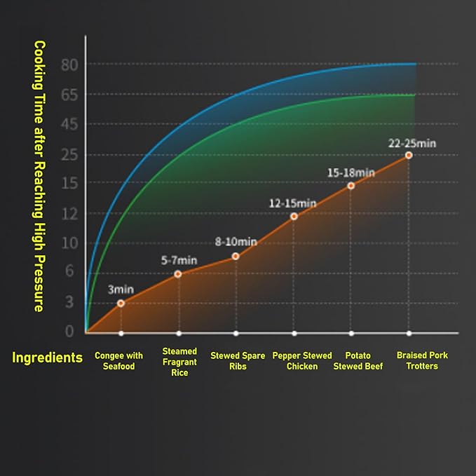 - 【Efficient Fast Cooking】: 80kpa High pressure stewing, energy saving, time saving, and rapid flavor infusion. The pressure cooker cooks food at higher pressure, raising the boiling point of water and speeding up the cooking process. It can be used on both induction cookers and open flame stoves. It heats up quickly and can be used for various cooking purposes.