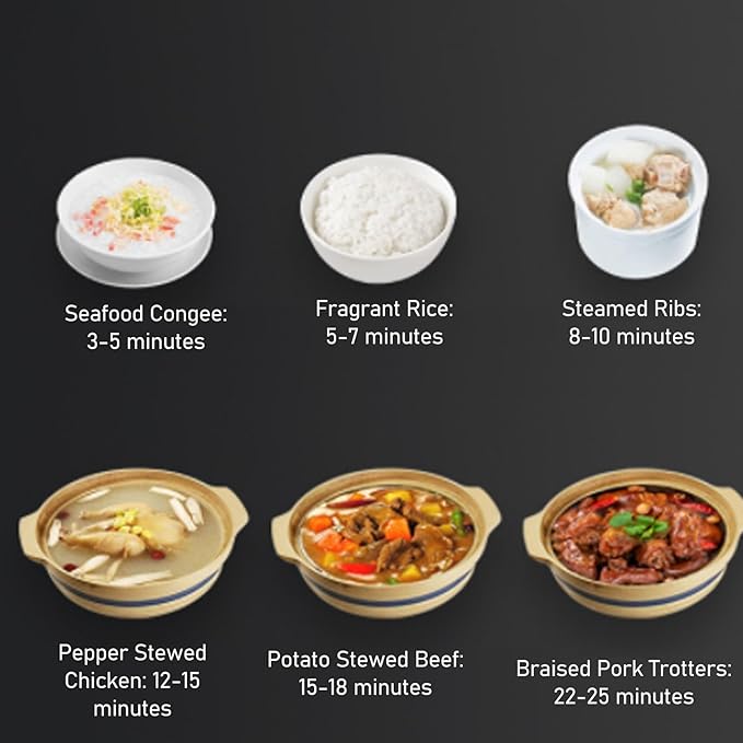 - 【Steaming Rack】: Even distribution of steam holes, heating food without waiting. The slot prevents water accumulation and ensures that water droplets along the slot without affecting the original taste of the food.