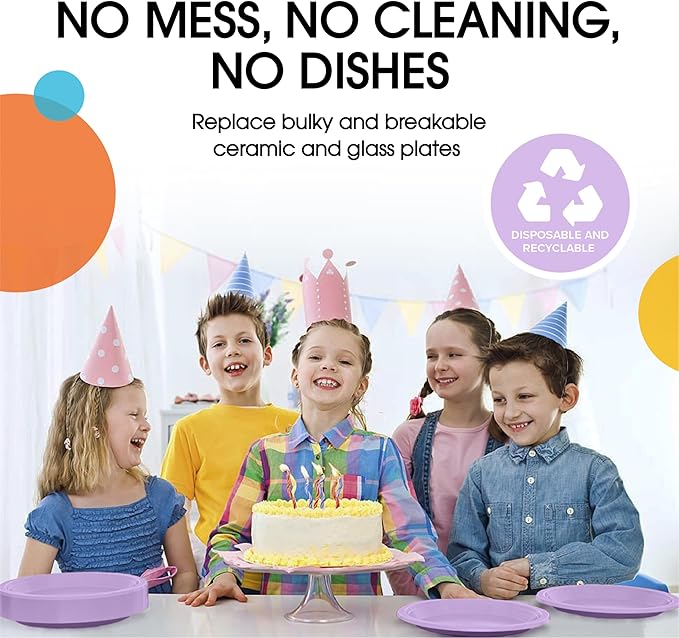 - Health & Safety: Our Lavender plastic plate set is made with food safe materials, ensuring the health and safety of your guests. Whether it's for a birthday party or a picnic, you can trust that these disposable plastic plates meet the highest standards of hygiene, providing peace of mind for you and your loved ones.