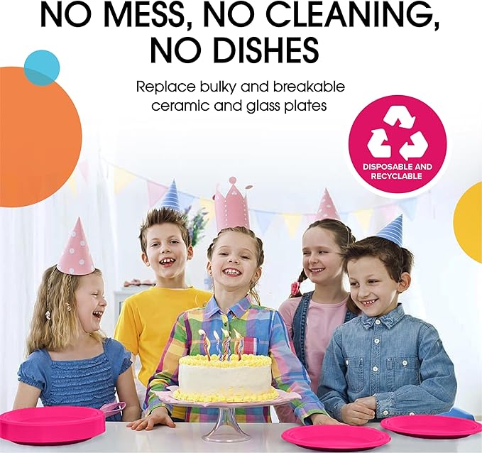- Health & Safety: Our Cerise plastic plate set is made with food safe materials, ensuring the health and safety of your guests. Whether it's for a birthday party or a picnic, you can trust that these disposable plastic plates meet the highest standards of hygiene, providing peace of mind for you and your loved ones.