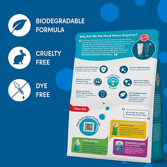 - PLANET-SAFE & FAMILY-FRIENDLY: Keep little hands (and paws!) safe with Lemi Shine dishwashing supplies. Our dish washing detergent pods were made with the planet and your household in mind. Our pods even won Best Green Cleaning Products 2022 in PARENTS Magazine! It’s not magic… just our eco-friendly, biodegradable citric acid!