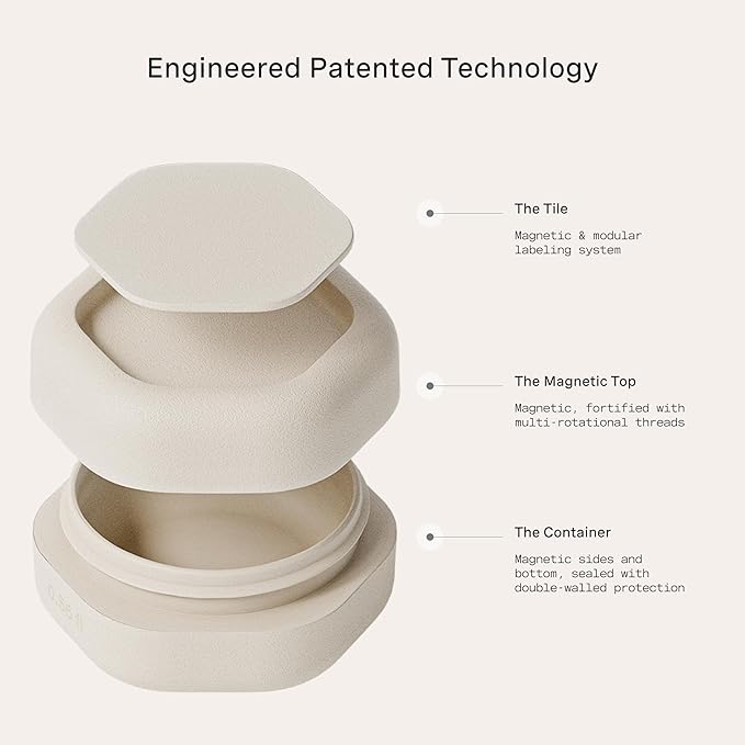 - PATENTED MAGNETIC DESIGN - Designed for seamless storage, our travel capsules feature a magnetic design that connects each container vertically or horizontally. They include magnetic labels that seamlessly swap between The Flex Small, The Flex Medium, and The Flex Large Capsules.
