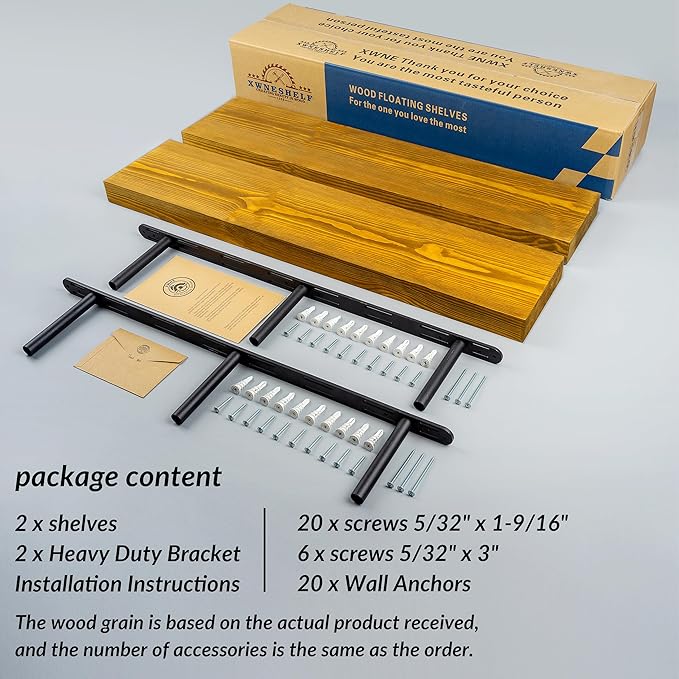 - Solid Wood Floating Shelves: The wood Floating Shelf is made from 100% solid pine, selected for its beautiful wood grain texture and knotted into points, with a sanded, hand-stained finish that gives the space a rustic, natural, warm feel. Note: All steps are done by hand and each ledge is slightly different, but equally stunning!