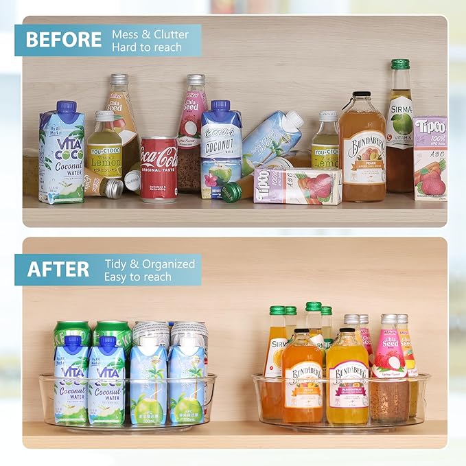 - High Quality & Durable - This lazy susan cabinet organizer is made of premium durable BPA-free PET, which is tough and not easy to break, offering a long-term durability and safety for food, which is easy to clean with mild soap and water. NOTE: DON'T PUT IT IN DISHWASHER
