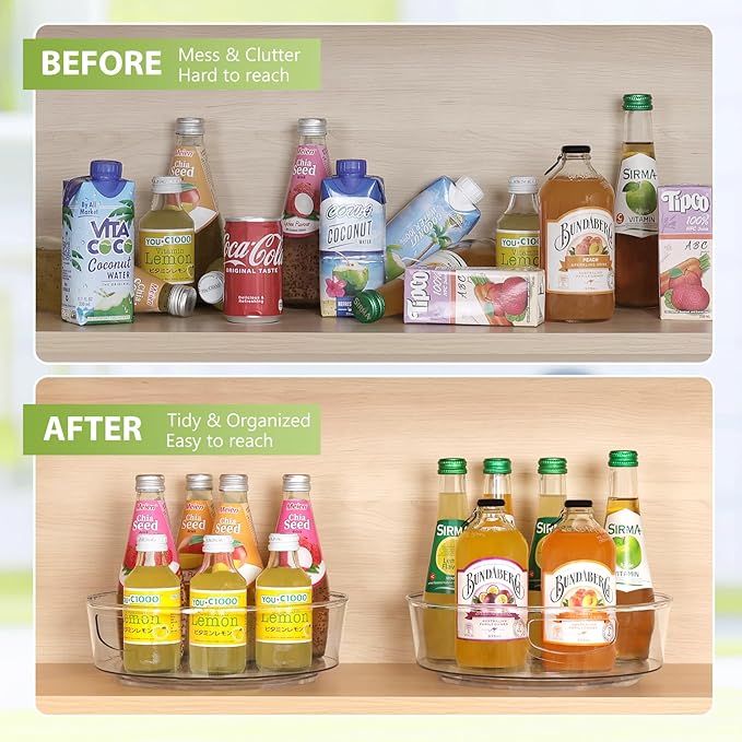 - High Quality & Durable - This lazy susan cabinet organizer is made of premium durable BPA-free PET, which is tough and not easy to break, offering a long-term durability and safety for food, which is easy to clean with mild soap and water. NOTE: DON'T PUT IT IN DISHWASHER