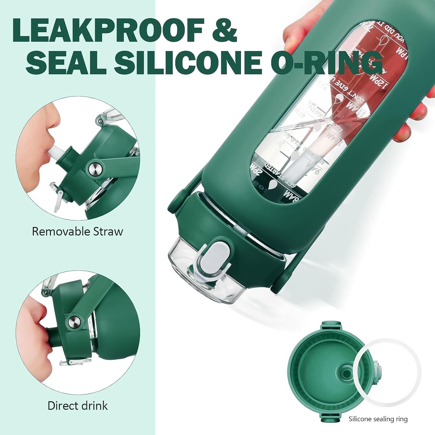 - ❤High-Quality Borosilicate Glass Bottle- This large motivationla water bottle is made of odorless, quality, borosilicate glass. Straw and lid are made of food-grade PP, BPA-free and eco-friendly.