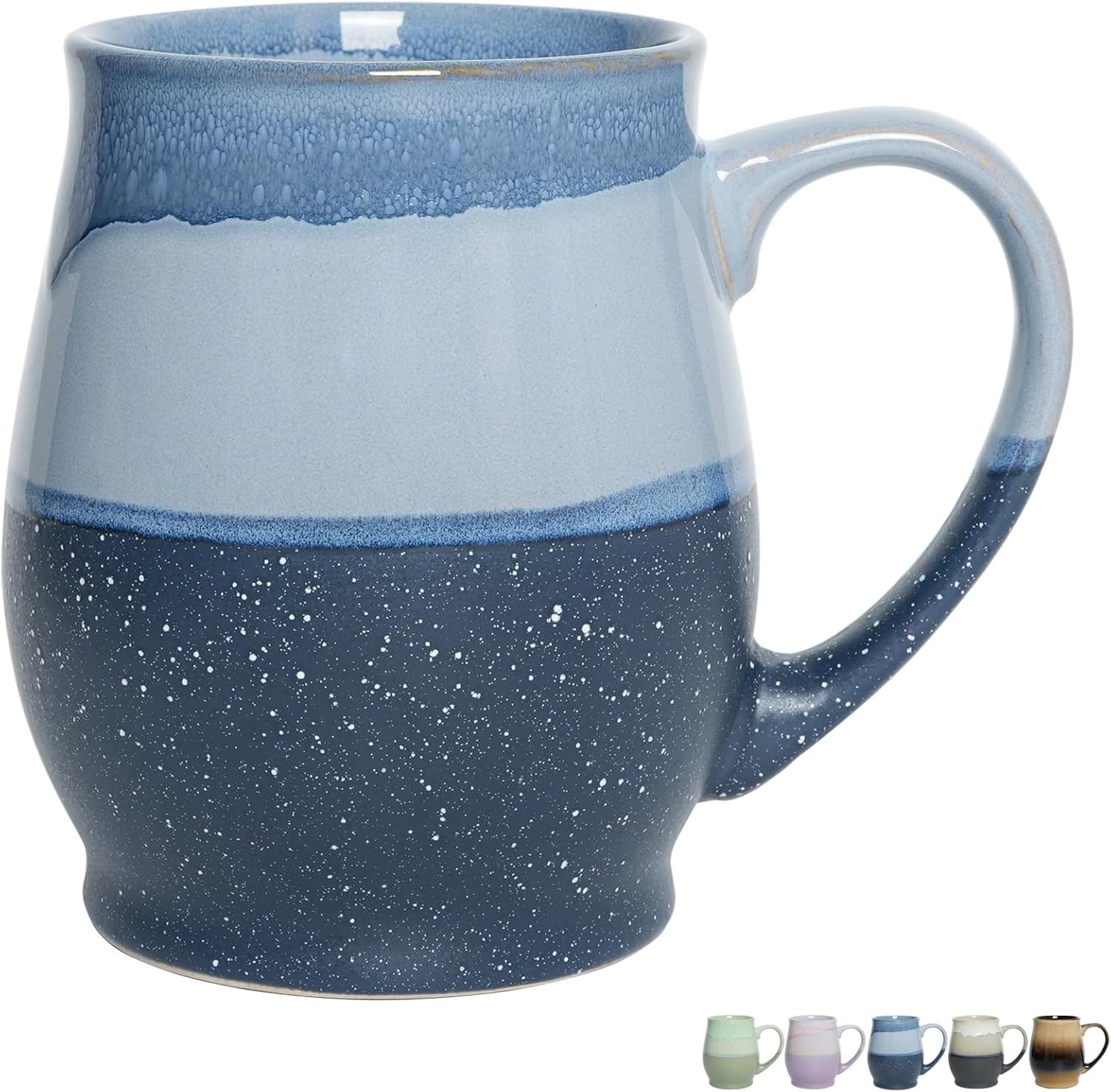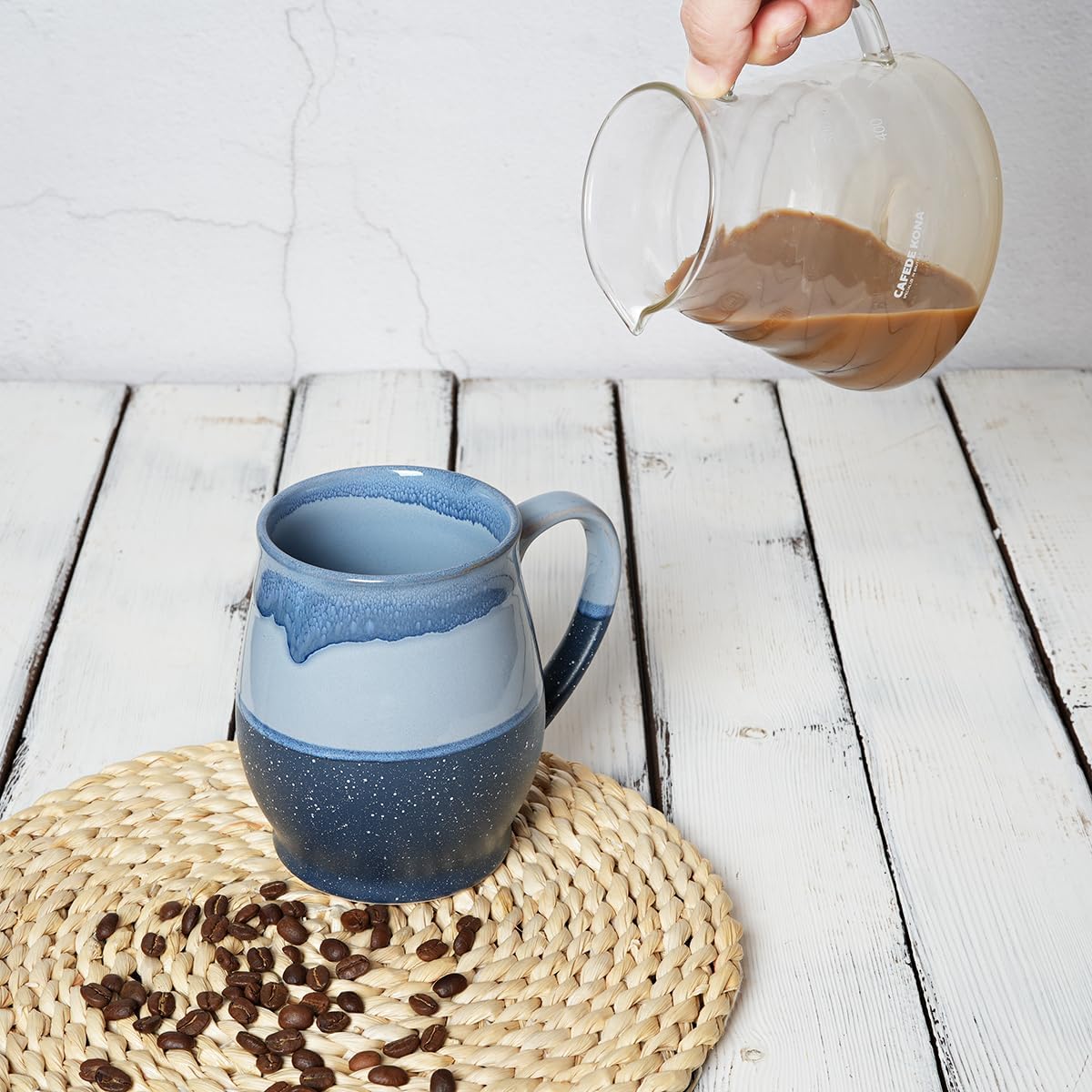 Bosmarlin Extra Large Ceramic Coffee Mug, 25 Oz, Dishwasher and Microwave Safe, Oversized Big Tea Cup for Office and Home, Reactive Glaze (Blue)