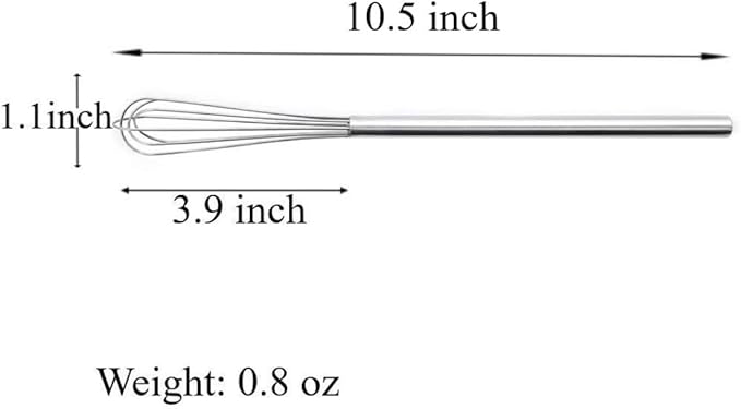 - Easy To Clean β Hand wash with warm soapy water, Dishwasher safe. Length οΌ10.5 inch, Width οΌ1.1 inch,Weight : 1.05 oz.Believe us, This durable whisk stays residue-free and ready for your next culinary task. You'll like this whisks.