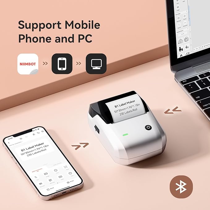 - Multi-scene Use: The B1 Bluetooth label maker is widely used, you can make labels anytime, anywhere, such as in small businesses, coffee shops, bakeries, retail, food industry, jewelry, etc. Price Label, address, jars, DIY, barcode, date, ingredients, and product labeling. It is for various labeling needs and brings convenience to work and life