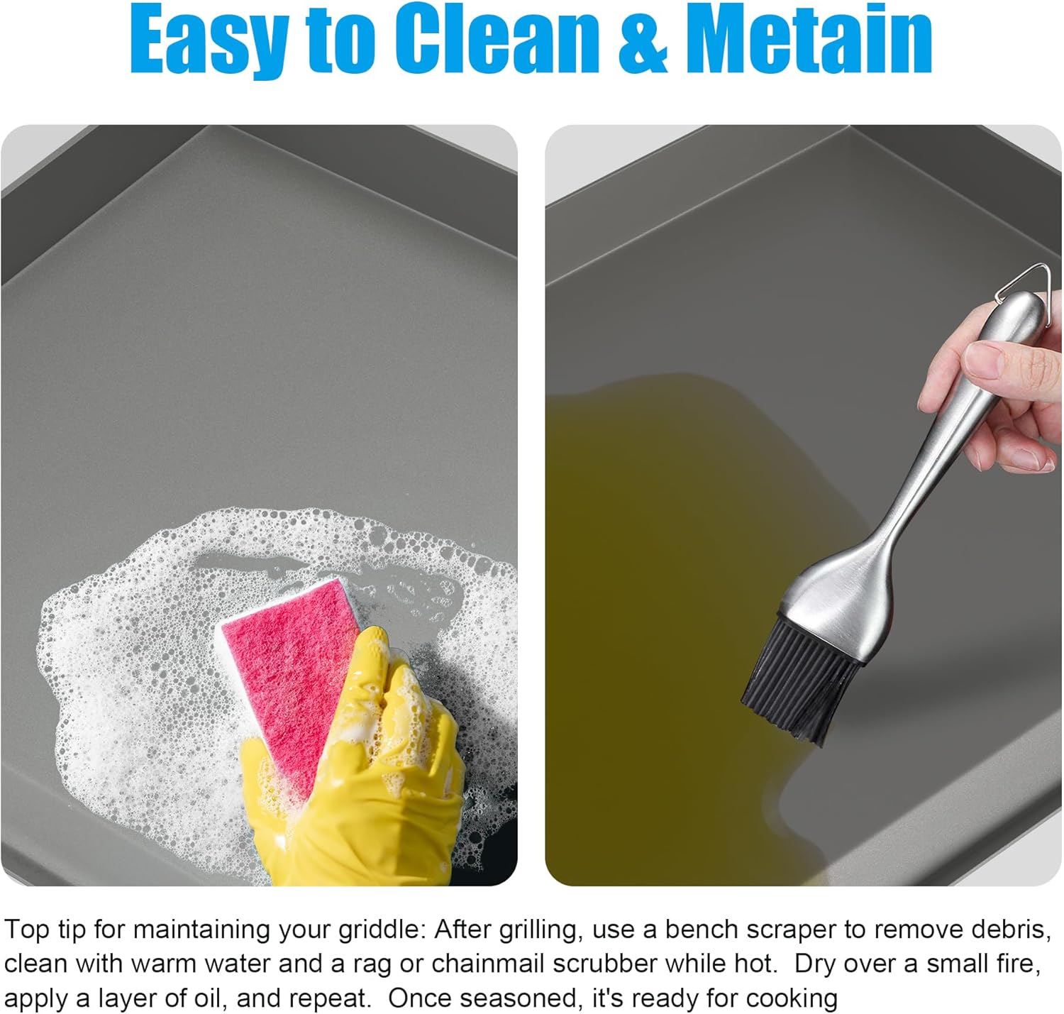 - 【Unique Design】The cooking surface is 16 x 24 inches, providing ample space for simultaneous preparation of multiple dishes. The recessed and drain hole design facilitates easy collection of grease, while the inlaid handle ensures convenient transportation