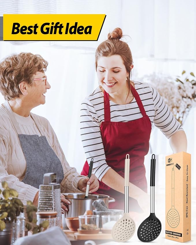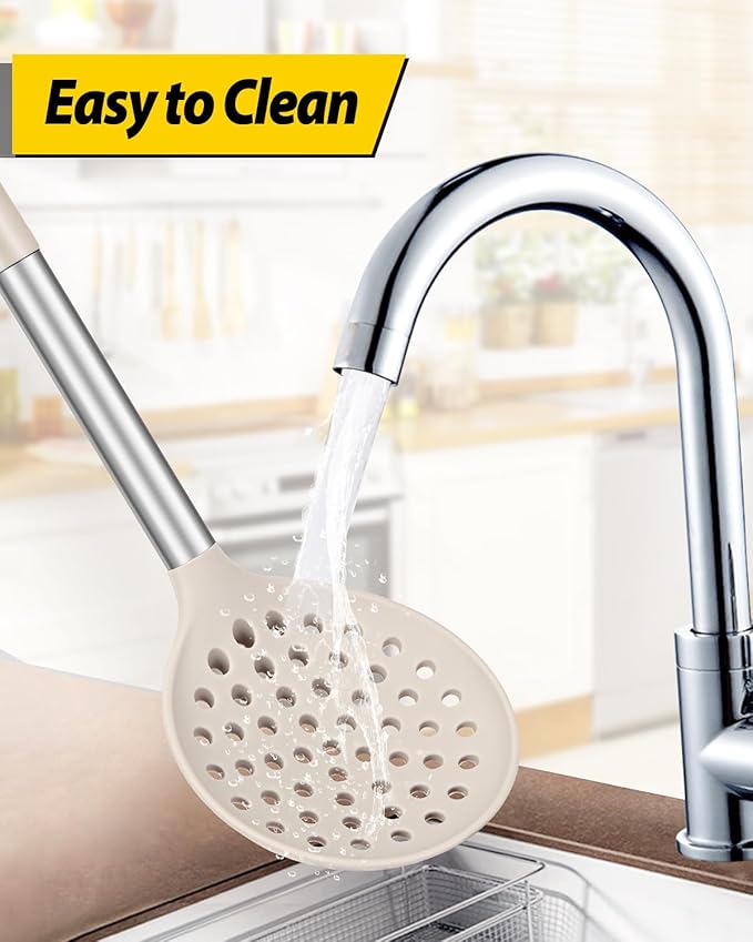 - More Safe and Healthy : Our kitchen ladle strainers are made of food-grade silicone, free of BPA;Even at high temperatures, there is no need to worry about melting or deforming;And the soft silicone head won't scratch the coating, it can better protect your pot