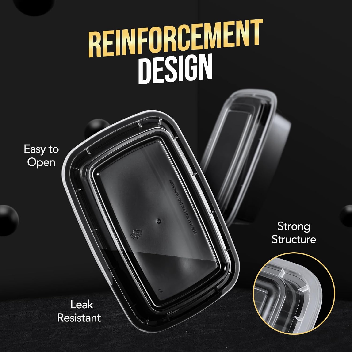 20-Piece (10-Pack) 16 OZ Meal Prep Containers Reusable with Lids, Sturdy Leakproof & Food Safe, Microwave, Freezer, Dishwasher Safe To Go Food Containers, Plastic Take Out Containers, Black