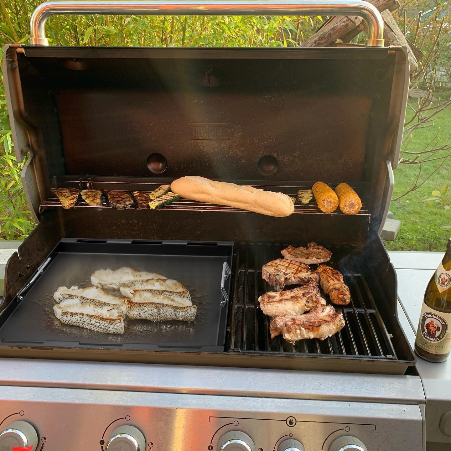 - 【Have Grill and Griddle】 Enjoy the best of both worlds by transforming your Genesis into a griddle and Grate, in a matter of seconds. Simply remove your cooking grates and replace for Weber Griddle and Garte to create food Gourmet food made by different cooking methods in a grill, no fretting about not being able to fry an egg on the grill, or being sad about not getting a grill mark on your meat, such as pancakes, eggs, pasta, fajitas and more.