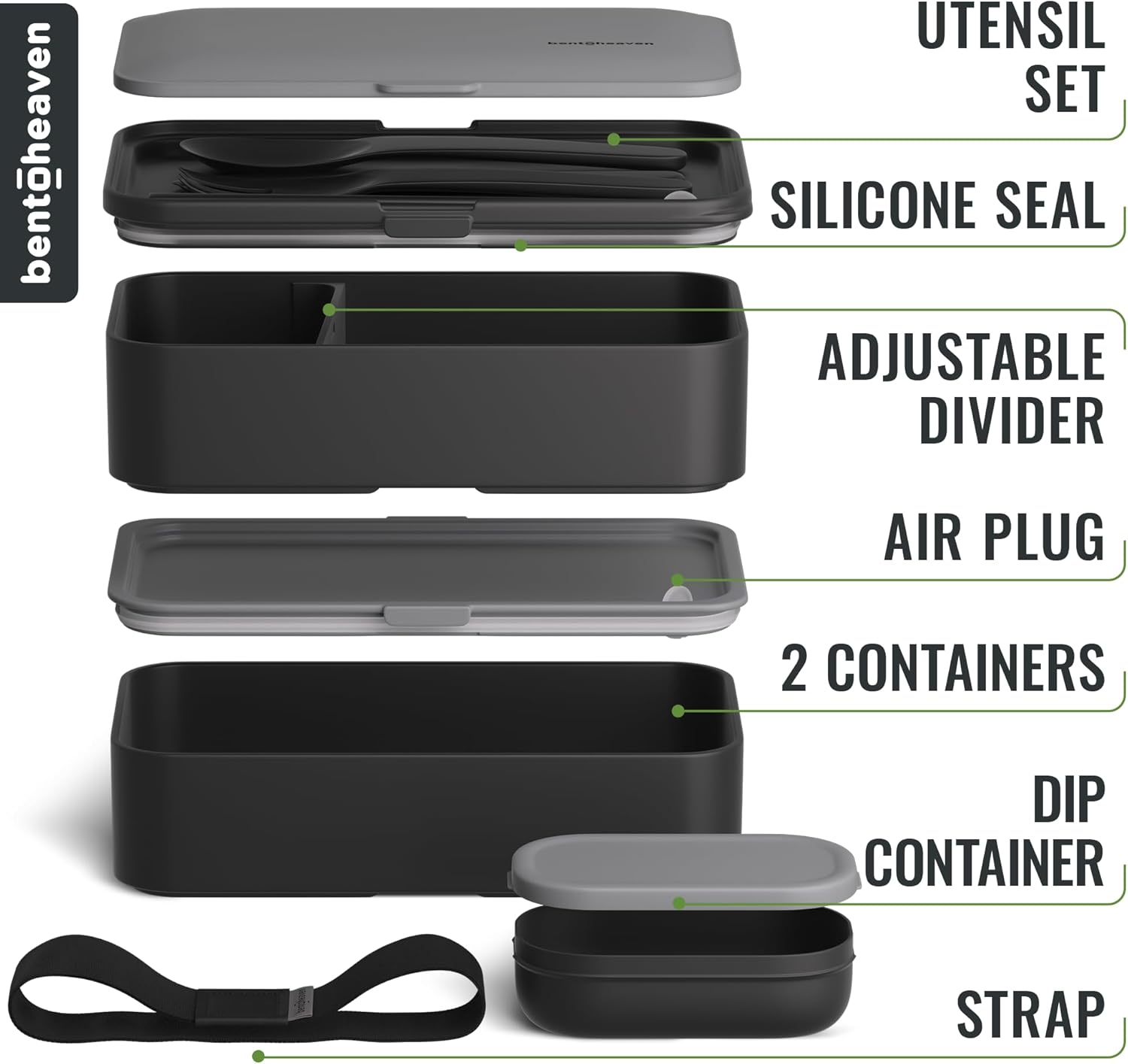 - Leakproof Bento Lunch Box! The Bentoheaven lunch box’s strong silicone makes it 100% leak-proof, while remaining super easy to open due to the built-in air vent plug.