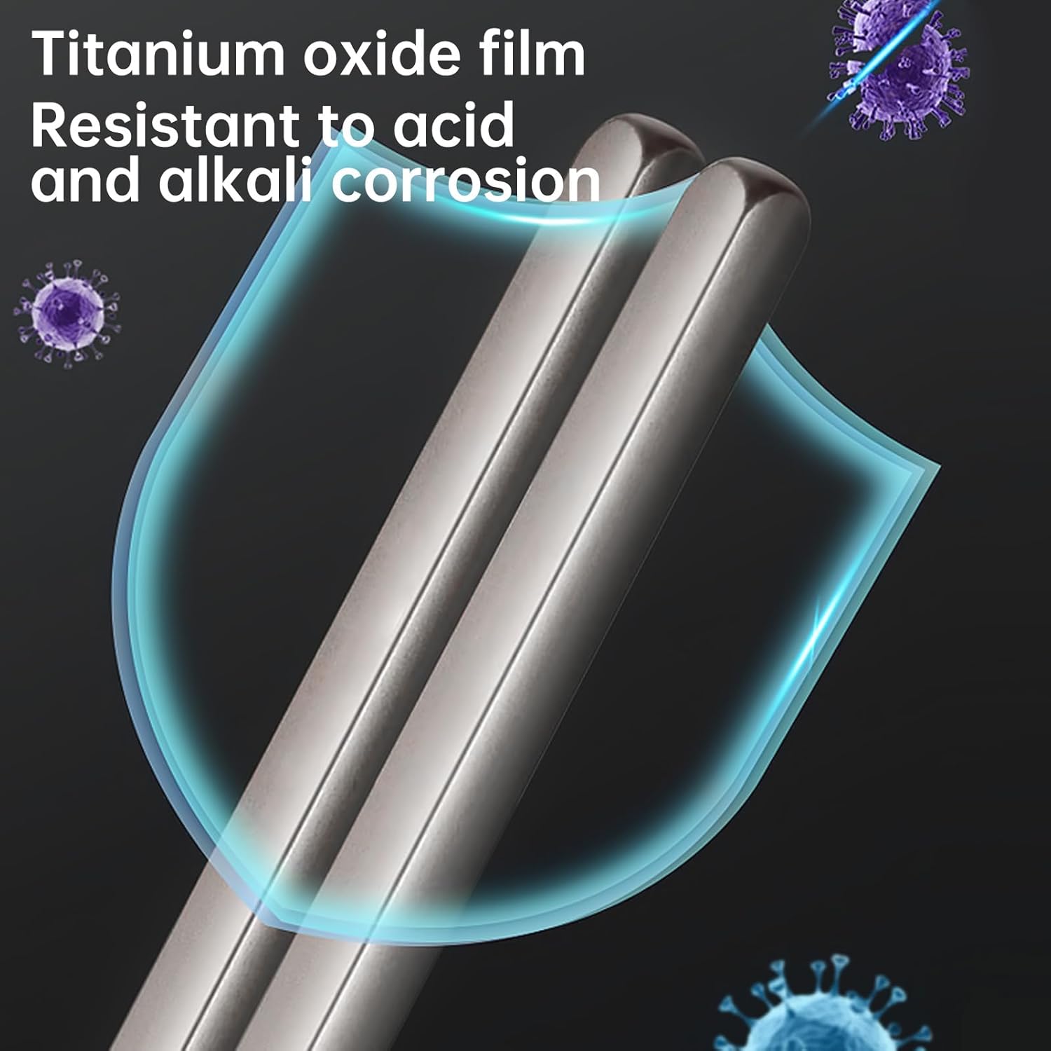 - 【Healthy Titanium Chopsticks】Titanium has no heavy metal precipitation, good compatibility with the human body, acid and alkali corrosion resistance, non-rusting, non-stringing properties, healthy titanium chopsticks are the ideal material for kitchen utensils