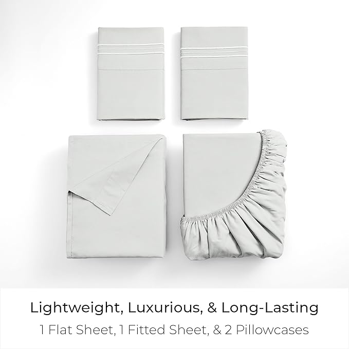 - Complete 4-Piece Full Bedding Set - Includes 1 Fitted Sheet (54"x75"x16"), 1 Flat Sheet (81"x96"), & 2 Pillowcases (20"x30") - all crafted from double-brushed microfiber for an ultra-soft feel. Temperature-regulating to keep you cozy in winter and cool in summer.