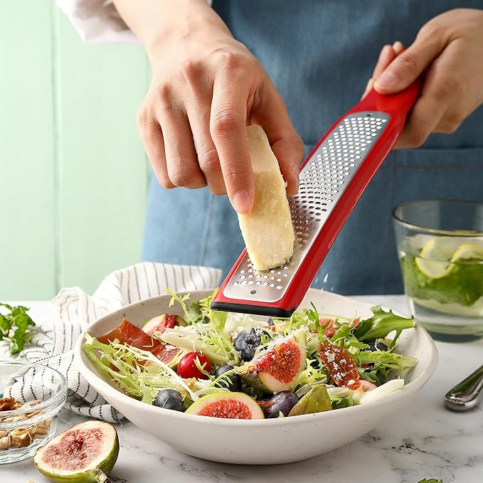 - Food Glides Easily On Surface - No more mushy grated messes. Enjoy smooth passes for zesting every time with this fruit zester. Easily zest citrus fruits like lemons, limes, and oranges. Also try it to grate cheese, parmesan, chocolate, ginger, garlic, nutmeg and more.