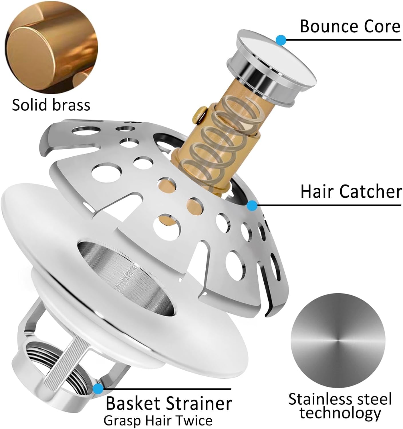 - [High Quality] Popup spring core made of brass, sink drain cover made of thick stainless steel, bathroom sink plug made of copper, with chrome Bright silver plating polishing process.Durable, easy water cleaning, and can be used for many years.